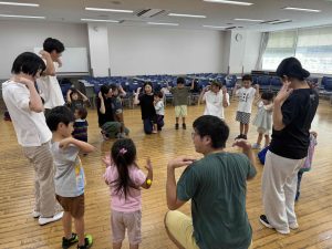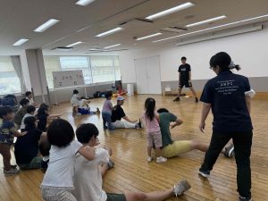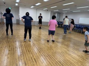 一定のリズムに合わせてジャンプしたり手を叩いたり、
