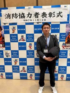 調布消防署から感謝状を授与されました