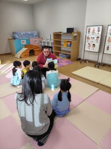 お子さんたちは英語の発音を真似てみたり、歌に合わせて体を動かしたり、